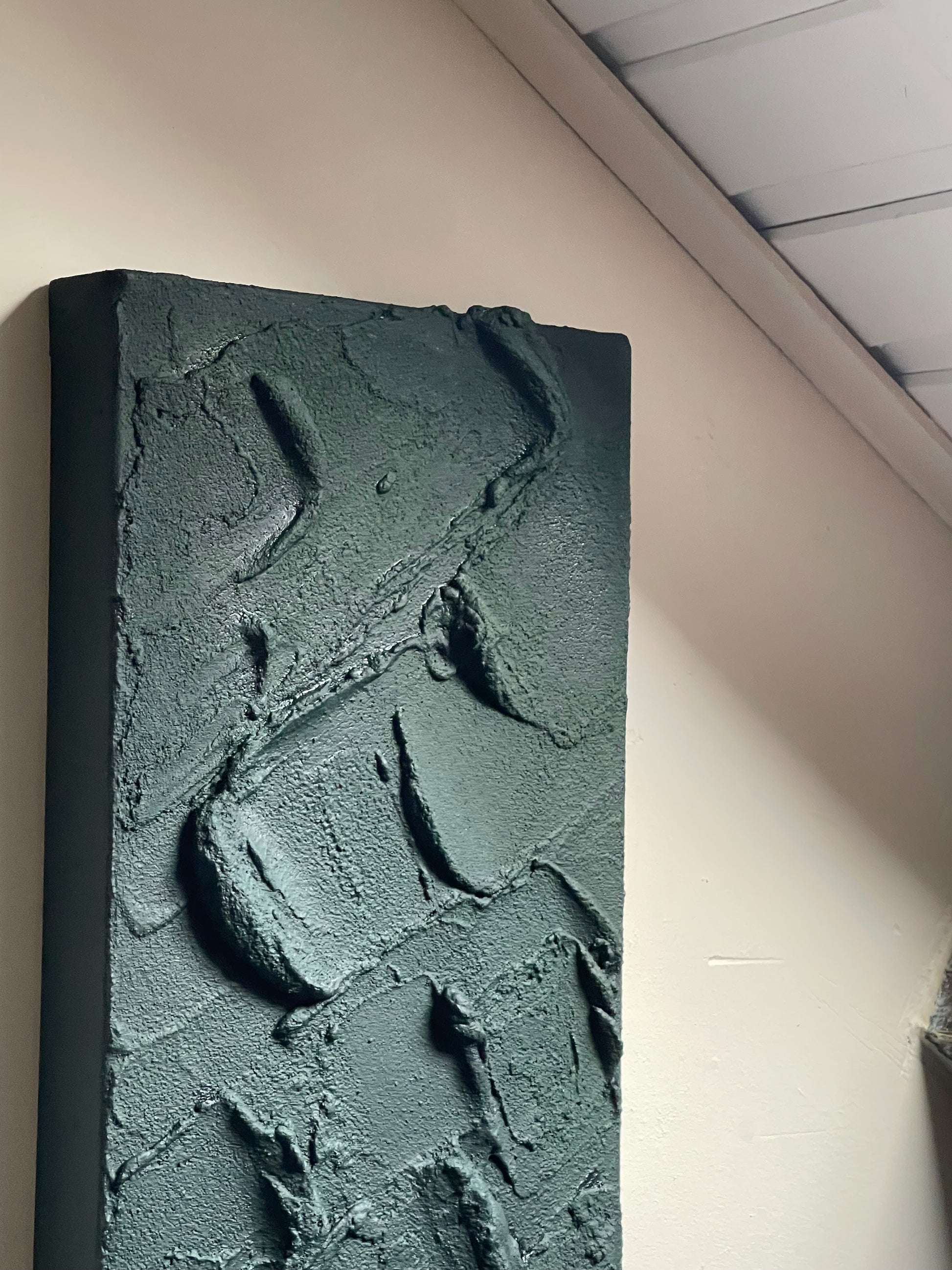 Charisme est une œuvre puissante qui joue avec la profondeur et la texture. Les reliefs, travaillés à la spatule, créent un jeu d’ombres et de lumières qui donnent à la toile une intensité presque sculpturale. Sa teinte sombre et élégante dégage une force magnétique, capable d’attirer le regard et d’imposer une présence unique dans tout intérieur.